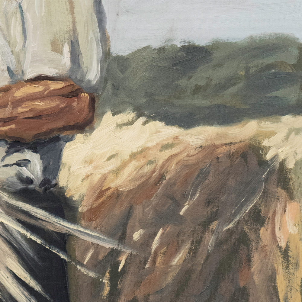 Un hombre siega bajo el sol gallego, con la serenidad de quien entiende los ritmos de la tierra. Inspirada en una escena real vivida durante un viaje, esta obra homenajea el trabajo silencioso del campo y el valor de quienes, con constancia y humildad, cuidan lo que dará fruto.