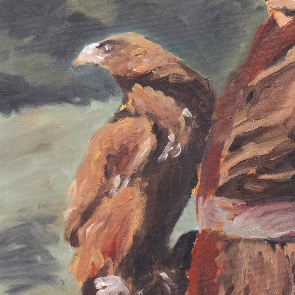 Un hombre sostiene su águila con firmeza y respeto. No se trata solo de un retrato: es un encuentro entre dos mundos. Inspirada en una experiencia real y en el deseo de conocer tierras lejanas como Mongolia, esta obra reúne la fascinación por la cetrería con la fuerza simbólica de las tradiciones milenarias.